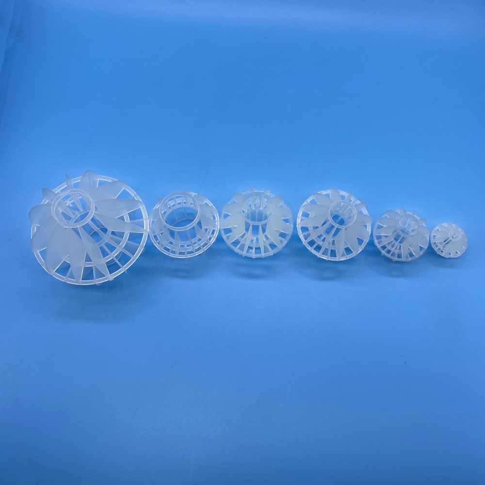 該產(chǎn)品采用聚丙烯塑料制成球狀,在球中部沿整個(gè)周長有一道加固環(huán),環(huán)的上下各有十二片球瓣,沿中心軸呈放射性布置,由于表面積大,傳質(zhì)效率高,產(chǎn)品的球瓣于球瓣之間空間大,且重量輕 強(qiáng)度大,安裝方便,耐高溫 耐腐蝕,性能穩(wěn)定。