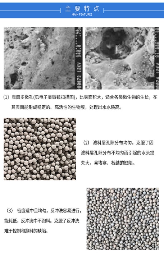 陶粒濾料在曝氣生物濾池處理微污染水具有掛膜快 處理效率高,耐低溫 耐沖 耐磨等優(yōu)點。